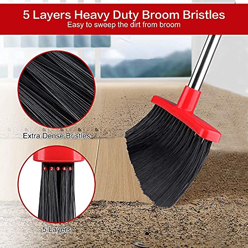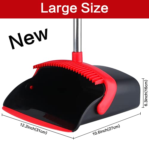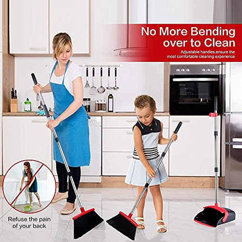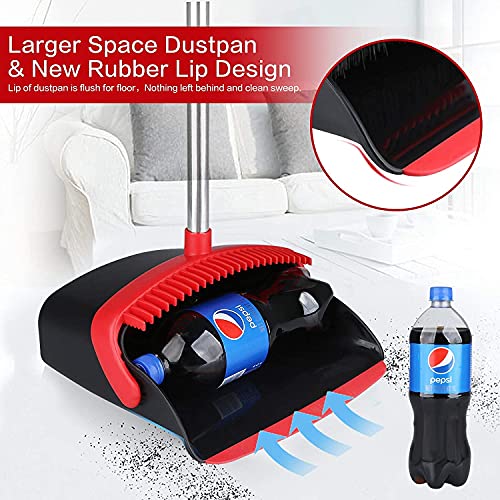 Large Broom and Dustpan, Broom and Dustpan Set, Heavy Duty Dust Pan with 55″ Long Handle Upright Dustpan Broom Set, Broom for Indoor Outdoor Garage Kitchen Room Office Lobby Use ( Black and Red )